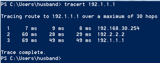 The output of this command should just state that the command completed ("OK"). This command will add a route specific to the 192.1.1.1 address (hence the 255.255.255.255 mask). The first occurance of this address is the destination address, the second occurance of this address is the gateway address (the actual virtual router) that you want the request to be routed through.. The metric of 30 is low enough to override the default settings in the routing table. The interface that is selected for this route is based on the interface number specified (IF 64).