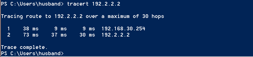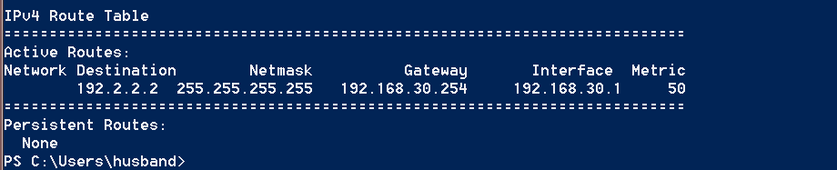 route add 192.2.2.2 mask 255.255.255.255 192.168.30.254 metric 30 IF 63