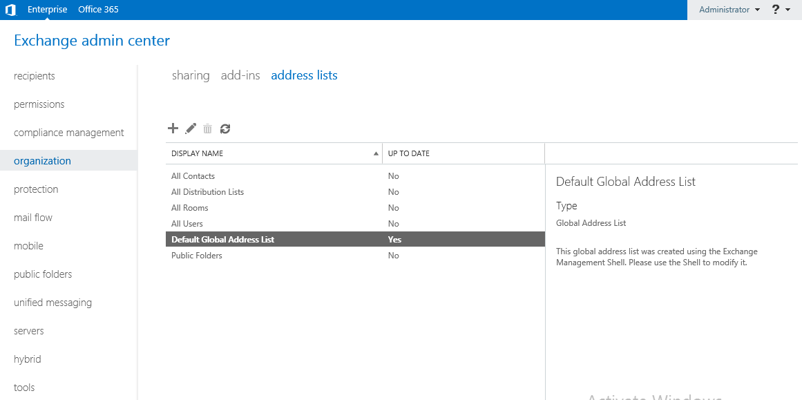 An offline address book (OAB) stores a list of Email users in Outlook so that Outlook does not have to access this information from the Exchange server address book directly from the Exchange server. There is a default address list that is kept up to date with users called the "Default Global Address List". This is the list that is shared with Outlook.