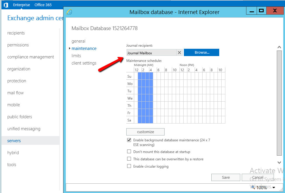 Database size relates to the maximum amount of space any individual can consume with their emails and email attachments. Let's assume that we will have up to 12 users in our network and that we will have 40 GB of disk space available for email storage - this leaves each user with 3.3 GB.