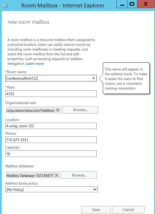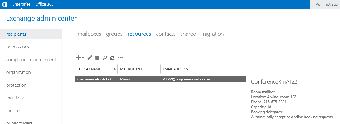 You likely created a couple of normal exchange users to do the previous lab, but make sure you watch how it should actually be done. You will also be shown how to create a resource recipient, which is a special email that calendar invites are sent to for researvation purposes, for example conference rooms, computers, cars, etc.