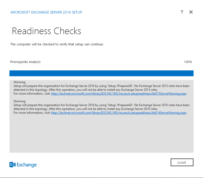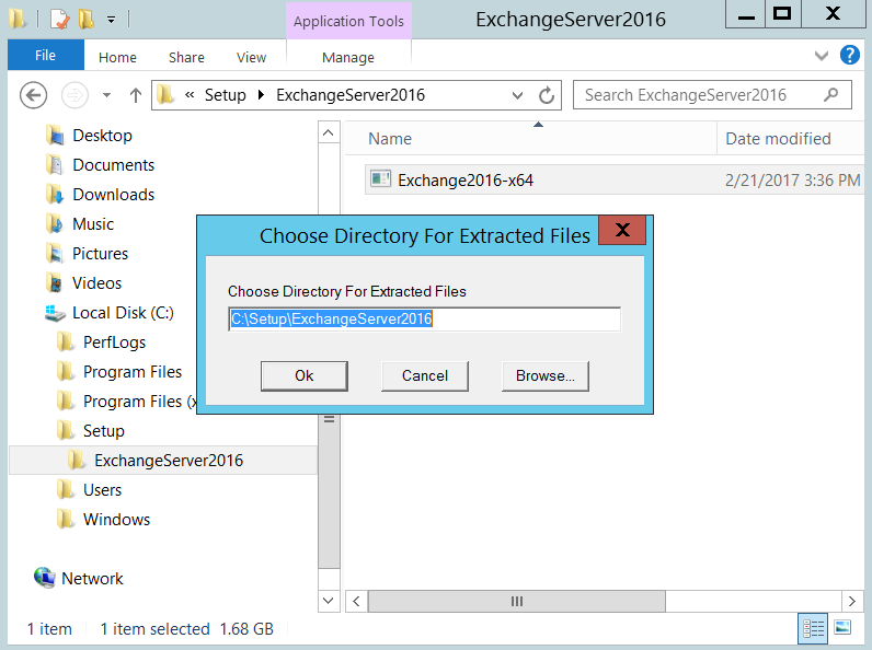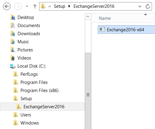 Run the setup.exe file located in the c:\setup\Exchange2016 folder. This will open the installation wizard which will check for prerequisites and install Exchange Server 2016.