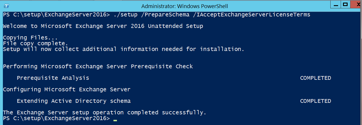 So, now we know which server will get the update to the schema master. Here is what you need to do to get this database extended for Exchange Server 2016.