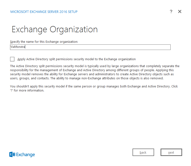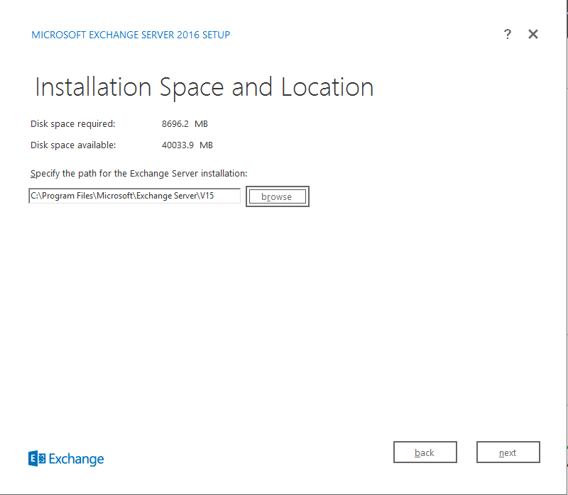 - Run the setup.exe application from within the folder where the Exchange server installation files reside.