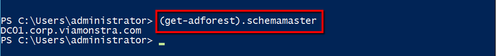 Since we are about to extend the Active Directory schema to make room for Exchange server Active Directory related entries, the command below shows you which server will get this update - it will be the schema master for your Active Directory infrastructure.