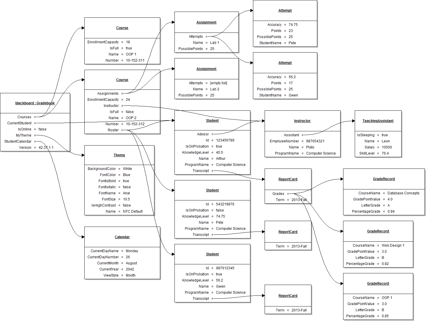 1/18/2016 9:23 AM 1410 1.1GradebookObjectDiagram.html
