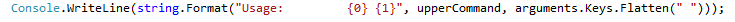 - The Usage section of the console's output should still be a list of strings separated by spaces