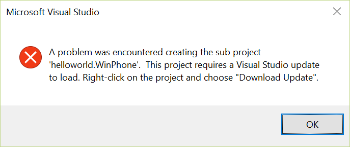 12/13/2016 1:48 AM 10715 01create-xamarin.forms-project-vs-windows-error.png