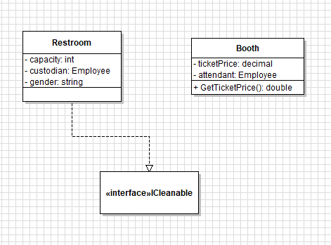 ...and click and drag from the Restroom class to the ICleanable interface.