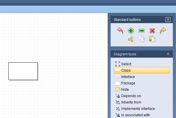 To create a class node, ensure that the Class Diagram tool is selected in the right-hand panel and click in the workspace.