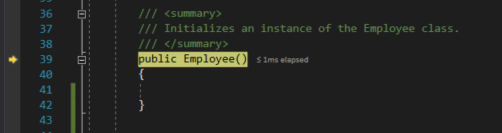 If we didn't explicitly define that Employee constructor and pressed F11 on the constructor call it would have passed right over the call and still instantiated the object.