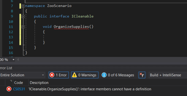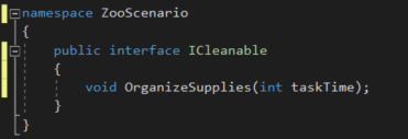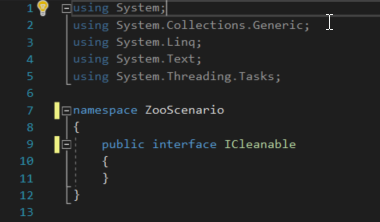 So let's say we have already added an interface named ICleanable that represents things that are well...cleanable.