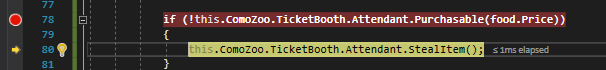 We have a bit of a problem, though, because since the method is returning false, the conditional will evaluate to false and the Steal method will be skipped over.