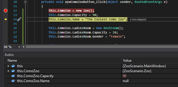 As soon as we press F10, however, that line of code executes and a new Zoo is instantiated.