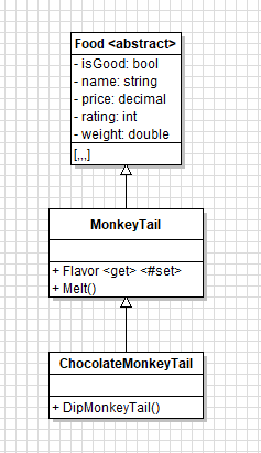 But our ChocolateMoneyTail class has a method that assigns the Flavor field in the MonkeyTail class. So how can we do that? We can downcast the MonkeyTail type to its more specific ChocolateMonkeyTail type to get that functionality.