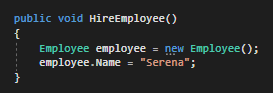 Then we need to make sure we don't "drop" the Employee object when the HireEmployee method is called because we would still like to use it.