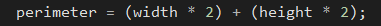 This line is not a variable definition - You are not defining the variable perimeter as anything. The perimeter variable was already defined previously, this line is assigning it to a value.