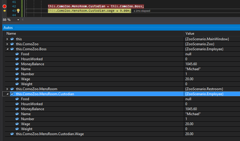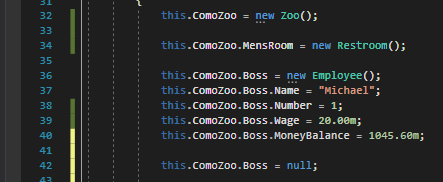 When line 45 executes, the Boss will be null, but the Custodian will still be an instance of Michael.