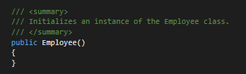 In this example we will be focusing on the relationship between object instantiation and constructors based on the code below. The first snip is the MainWindow and the second snip is in the Employee class.