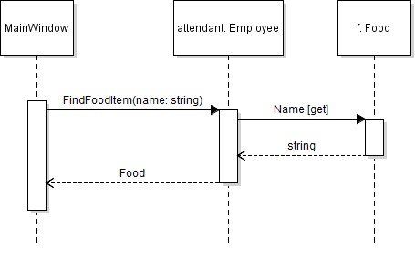 Also note that the get in this diagram is surrounded in [ ] rather than < > like in a class diagram. This is NOT convention for sequence diagrams but is used for testing purposes. In instructions you will see it represented as < >.