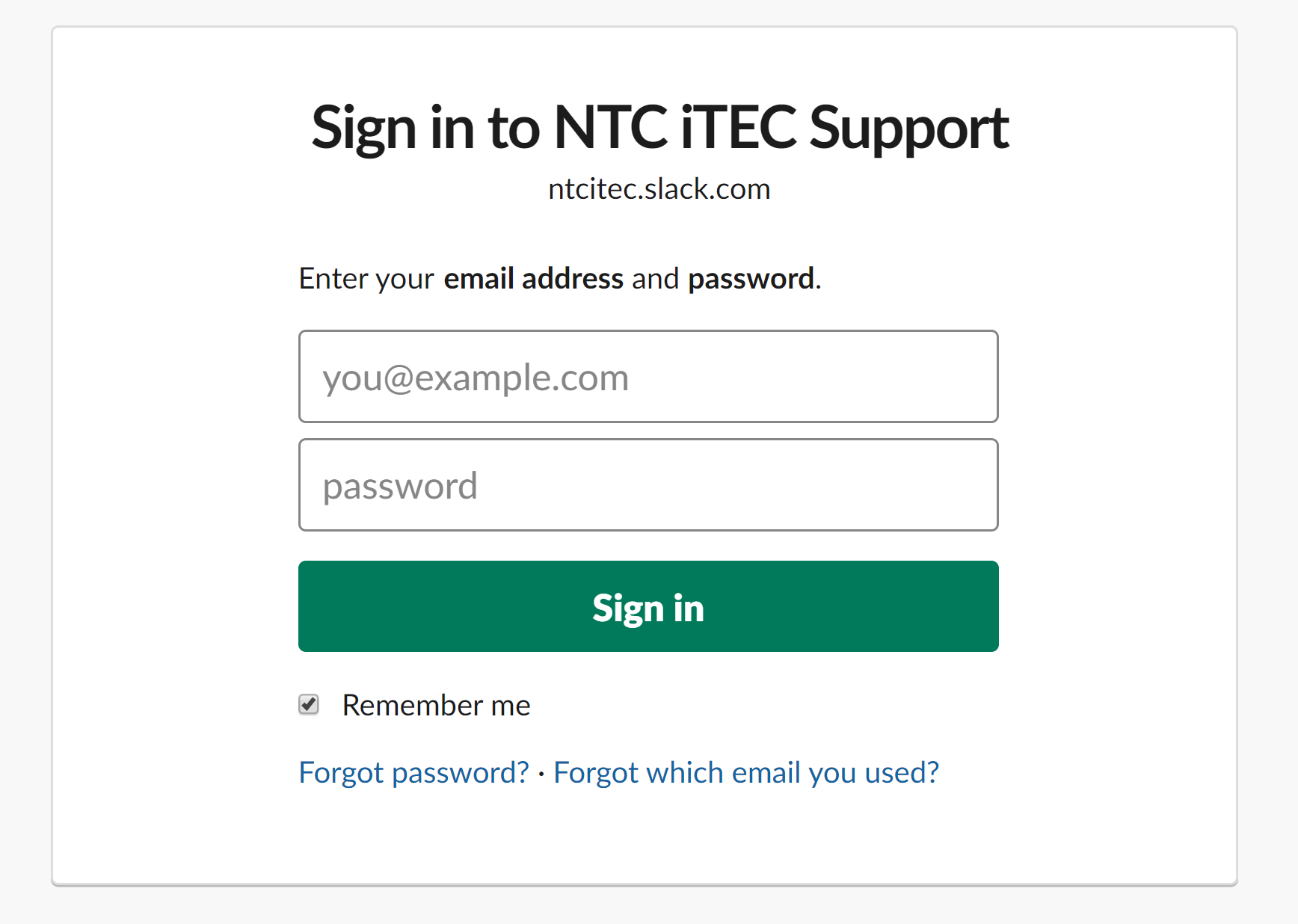 Unlike other sign-ins such as Canvas, Outlook, and Azure, Slack does not use NTC's single sign-on portal. Instead, you have to sign in to it like you would any other application.