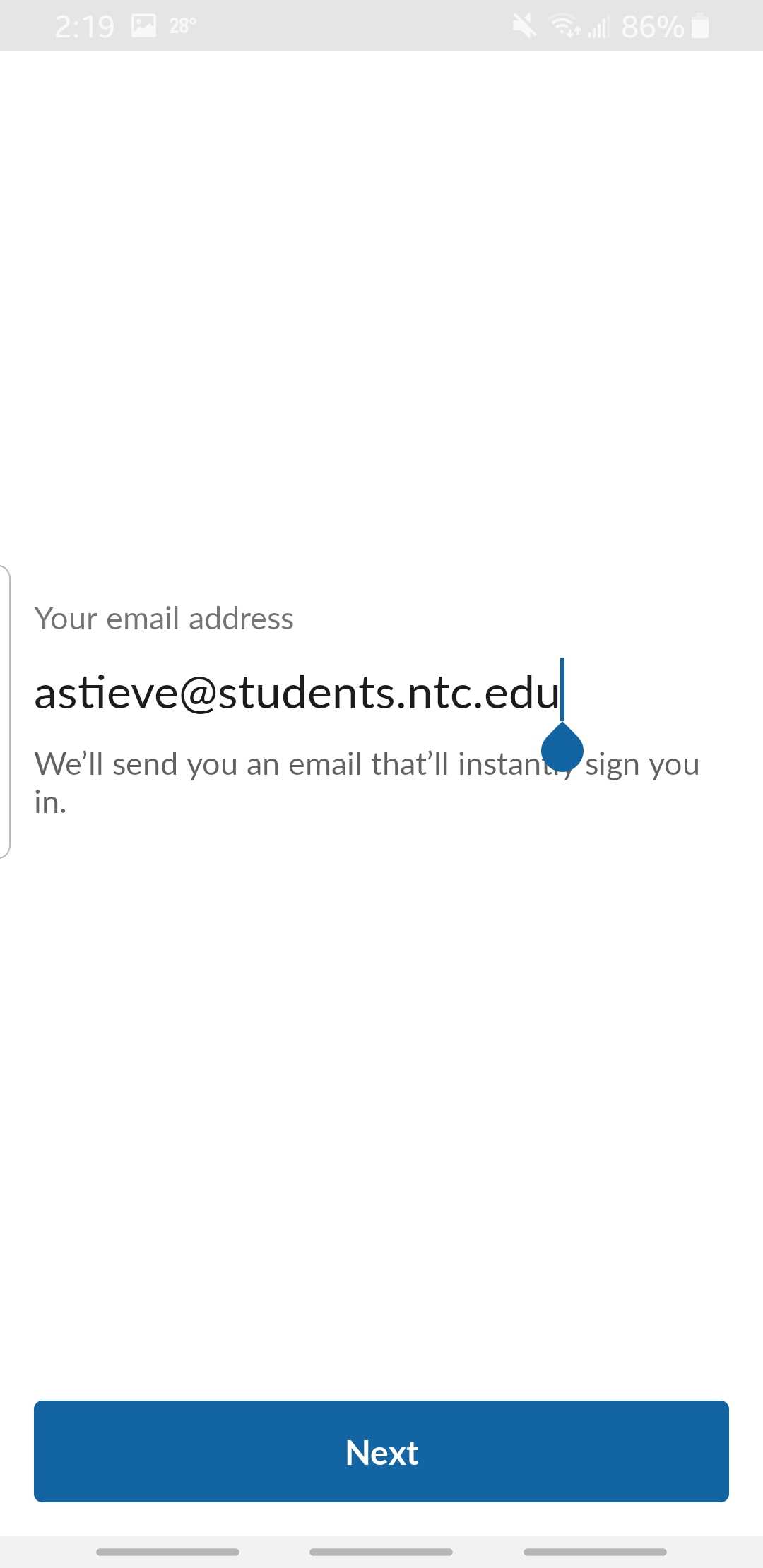 After tapping the "Email me a magic link" button, enter your email address you used to create your Slack account.