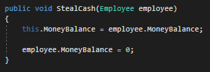 This is possible because the attendant's MoneyBalance field is public (i.e. available to anything that has access to it). We can fix this by making the MoneyBalance field private.