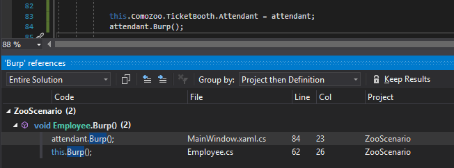 Because it's public we can call it from the MainWindow without a problem. As weird as it may seem, we could call the Burp method until the attendant withers away to nothing.