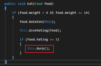 We would like to give control over the Employee's burping to them. To do this we will make the Burp method private.