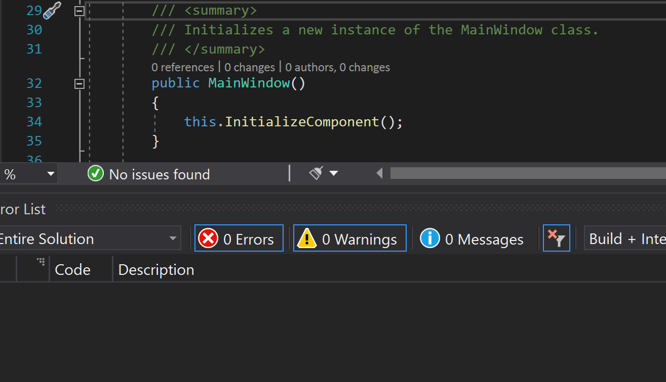 The warnings will show the description, project, file, and line number the warning is located in.