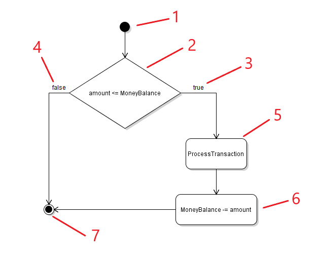 - An Activity taking place. In this example, this is a line of code that subtracts the amount from the MoneyBalance.