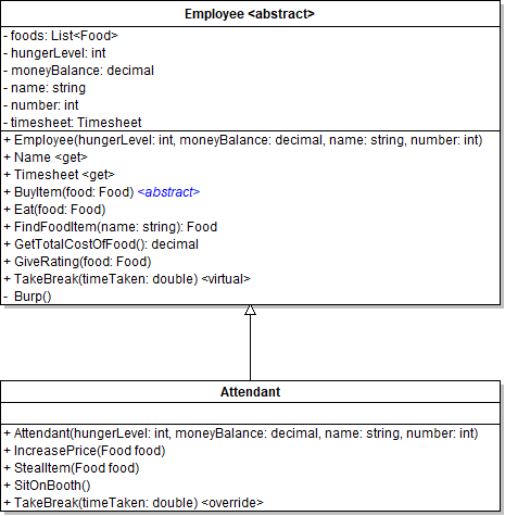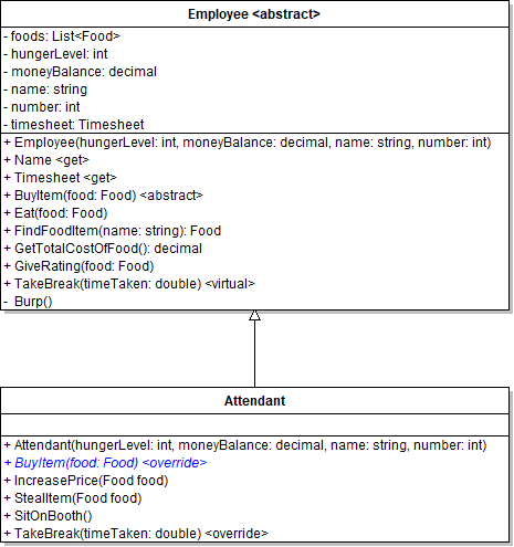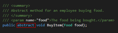 We aren't done, however. Whenever a method/property is made abstract there needs to be an override of that method declared in the descendant class.
