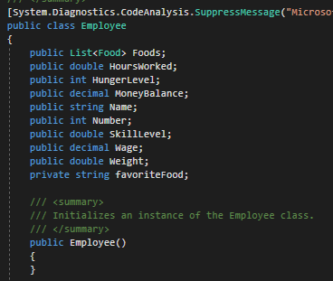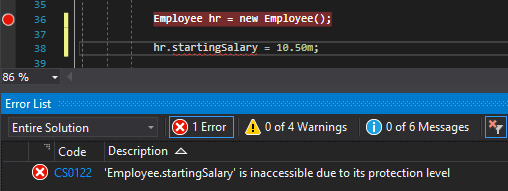For instance, our example above assigns the private startingSalary field. Note that we cannot assign the startingSalary from the MainWindow.