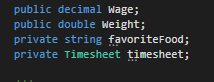 So we have a private field of type Timesheet..