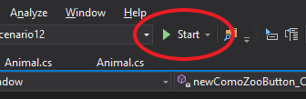 You can start the application by either pressing Start in the toolbar or pressing F5. This will bring up the WPF window/application.