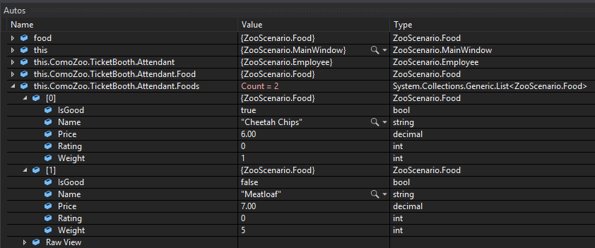 Let's say I have a List of all the Employees in the Zoo. A good way to check if they have the things they are supposed to have is to debug the list and expand the Employee object.