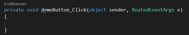 The demoButton_Click code (which there is currently none of) will execute every time the application is started and the Demo button is clicked