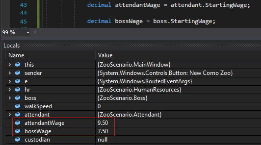 When this is done all of our errors will go away and when we call the property in the MainWindow we will get the correct value for each type of Employee without fear that a virtual method will return an erroneous value.