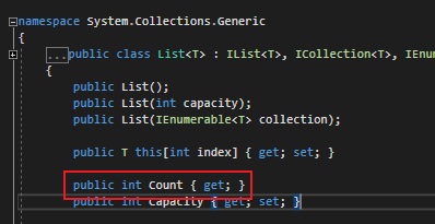 Much like the Math class, the .NET library's List class offers several methods and properties that can be used. One of those properties is Count as shown in the snip below.