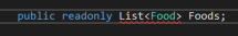 To define a list, give it a visibility, the readonly modifier, a type, and a name. The readonly modifier will be covered in depth in 2.4, but the importance of it is that it locks down the modification of the field. The 'type' in lists pertains to the kind of thing the List will be composed of. The type needs to be put inside the < > after accessing the List class.
