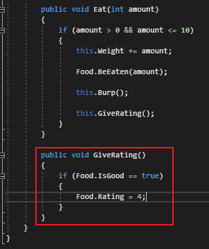 To start we will define a method that only assigns a rating of 4 if the Food is good.