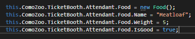 In this case the IsGood field value is false because it has never been assigned to and the default value for bool types is false. So let's make someone give a review of the Food.