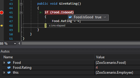 So when we run the application, we can see that the conditional will evaluate to false because the IsGood field's value is false and a Rating will never be assigned.