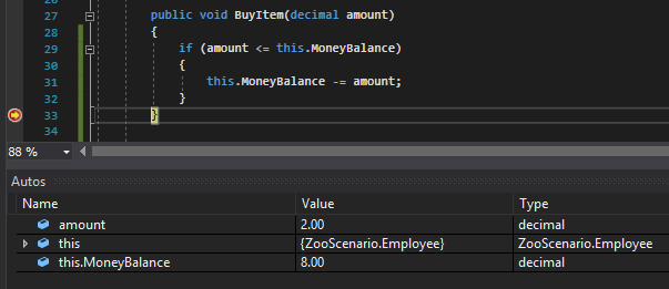 Let's say we have a person that has the method shown below that takes an amount and then removes whatever the amount is from their MoneyBalance.