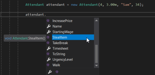 Once we cast it to a more generic type, however, the members that relate to the Attendant class are no longer there and the object becomes a little less complicated and more generic.