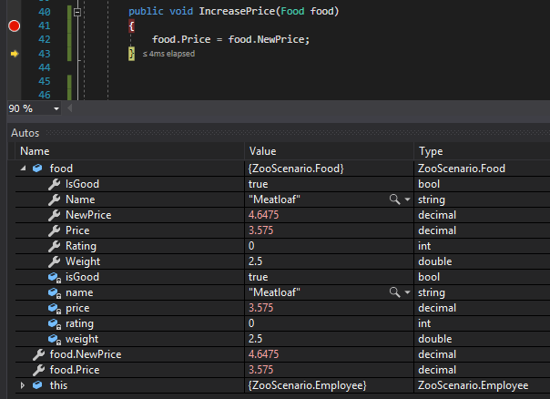 ...we can see that the private price field is now the 3.575 and the NewPrice property updates to a new value because it is using the new private price field value.