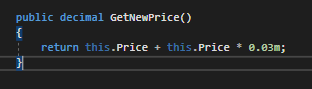 Of course this works only because the Price field is of type decimal and the return is of type decimal. If we were to try and assign the return to a field of type string we would get an error.