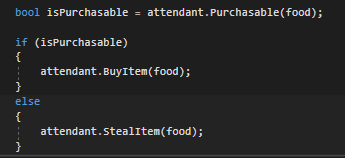 The method calls GetNewPrice on the food object and stores the result in the resaleCost variable and then returns the resaleCost variable. While this is fine it takes up space. To make the code a bit cleaner we can condense the code by directly returning the result of the method call.