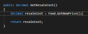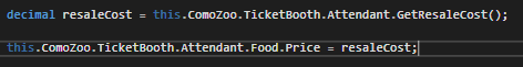 So Sam the TicketBooth Attendant has a slightly criminal element to him and he wants to start reselling food from the TicketBooth at a higher price. To do this he needs to figure out the upcharge of the Food item he has so we will give the Employee a new method that gets the price change of their Food item.