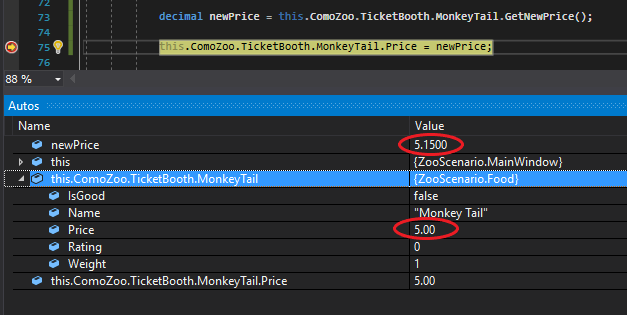 Then in the MainWindow we can call that method on the MonkeyTail object and assign the result to a newPrice variable.